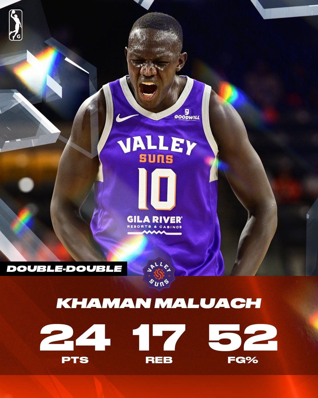 此役,太阳10号秀、中锋马卢阿奇表现不俗,2米16的他甚至还秀起了砸篮板接球暴扣的好戏。