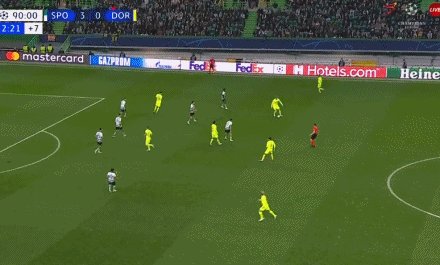 39'里斯本竞技禁区内配合,多特蒙德铲球解围不远,贡萨尔维斯外围直接起脚远射破门!2比0!