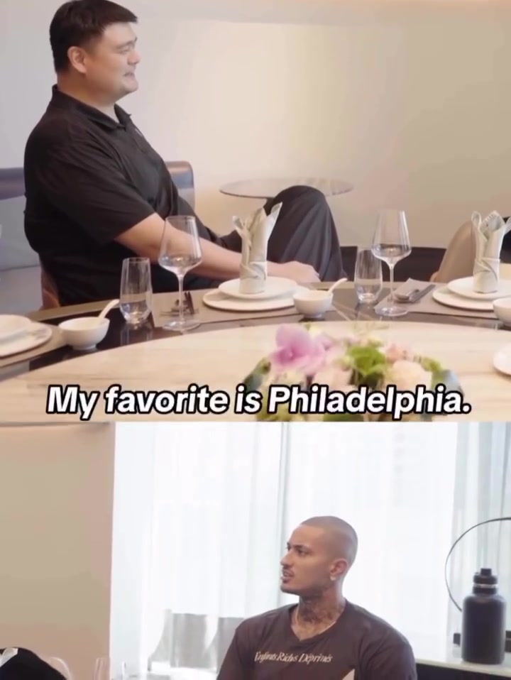 姚明表示:“费城,因为牛肉奶酪三明治(源于费城的一款美食)。我还喜欢博物馆,芝加哥的博物馆也不错,但费城还有海军造船厂,那也算是一种博物馆。”